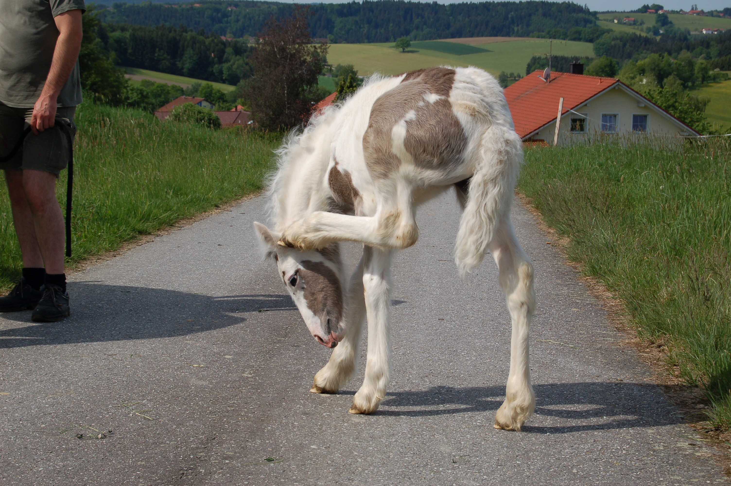 Nachzucht BallyleeBallylee sollte die Reihe unserer Zuchtstuten vervollständigen - lange haben wir auf ein selbstgezogenes Stutfohlen gewartet (wir hatten zwar schon Cailiin - doch bei ihr hatten wir leider keinen Einfluss auf die Anpaarung). Sie gehört eher dem sportlichen Schlag an. Dennoch eine sehr typvolle Tinkerstute mit ausreichend Behang - also kein scheckiges Warmblut mit 3 Haaren an den Fesseln *grins*. Beara ![]() geb. 25. April 2009 Geschlecht: Stute Vater: Tommy Bearaist bereits im November letzten Jahres zu ihrer neuen Besitzerin umgezogen. Wir hoffen, dass sie sich genauso prächtig entwickelt wie ihre Mutter und dass sie ein hervorragendes Fahrpferd wird.